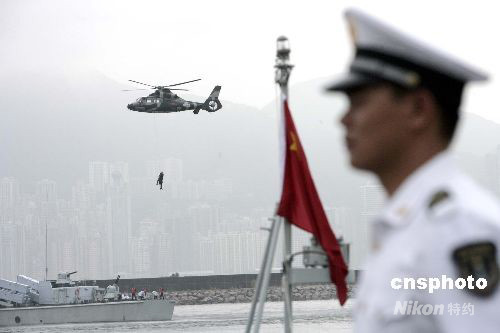 圖為駐港部隊槍械團體操表演。中新社發 張勤 攝