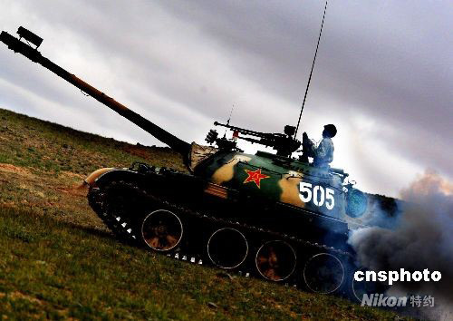 9月25日上午,中國人民解放軍“礪兵--2008”演習(xí)在塞北大漠展開。參演雙方的主力分別是濟(jì)南軍區(qū)某機(jī)械化步兵旅和北京軍區(qū)某裝甲團(tuán)。這場演習(xí)是一場在復(fù)雜地形、復(fù)雜電磁環(huán)境、作戰(zhàn)信息“背靠背”情況下,跨軍區(qū)聯(lián)合、多兵種協(xié)同、陸航空一體、實兵檢驗性戰(zhàn)術(shù)集團(tuán)立體機(jī)動攻防戰(zhàn)斗演習(xí)。中新社發(fā) 宋吉河 攝