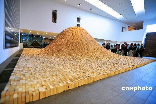 圖為林瓔的《2x4 風景》,該作品長36英尺,寬53英尺,高10英尺,重約30噸,由4萬塊木板構成,10個工人用了15個工作日建成。中新社發 陳鋼 攝