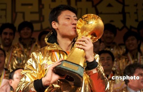 12月4日,2008中國足球協(xié)會超級聯(lián)賽頒獎典禮在山東濟(jì)南舉行。冠軍球隊(duì)山東魯能泰山全體將士登臺舉起火神杯。