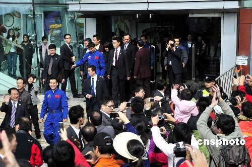 十二月七日上午,“神舟七號”航天員翟志剛、劉伯明、景海鵬來到香港著名風景地太平山山頂游覽及參觀位于山頂的杜莎夫人蠟像館。