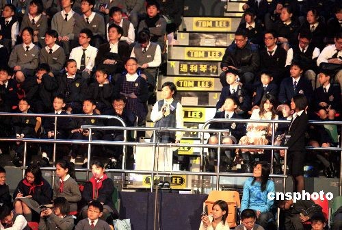 十二月八日,神舟七號載人航天飛行代表團在香港灣仔伊利沙伯體育館與香港學生真情對話。