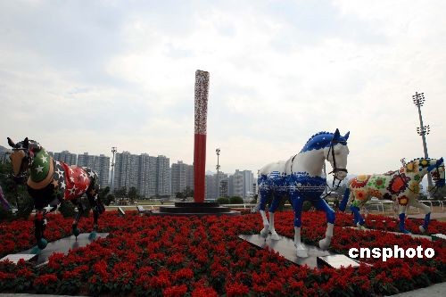 著名的香港沙田馬場,2008年成為首個迎接北京奧運圣火的奧運比賽場地,載入奧運史冊。為了打造香港“馬運之都”,香港將建立“奧運博物館”,位于沙田馬場中央“彭福公園”內的“奧運圣火盆”,也將成博物館珍品。中新社發 潘索菲 攝