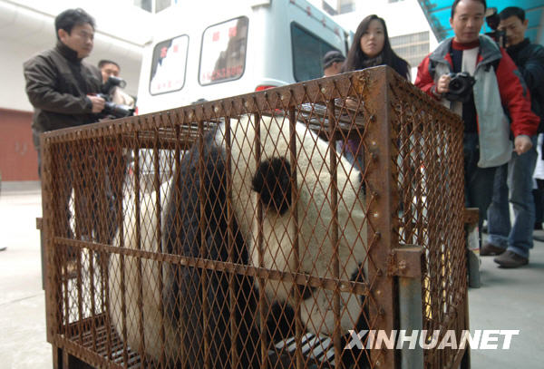 12月20日,大熊貓“小明”運抵西安古城眼科醫院。