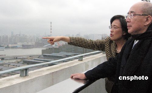 十二月二十一日,正在上海參加第四屆兩岸經貿文化論壇的中國國民黨主席吳伯雄造訪上海世博局,登高俯瞰2010年上海世博會園區工地。中新社發 許曉青 攝