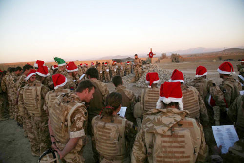 阿富汗哈爾門德省的黃昏,落日掛在灸烤了一天的大地上。英國海軍陸戰(zhàn)隊的士兵們戴著圣誕帽,集結在戰(zhàn)爭紀念碑前,唱起圣誕節(jié)頌歌。