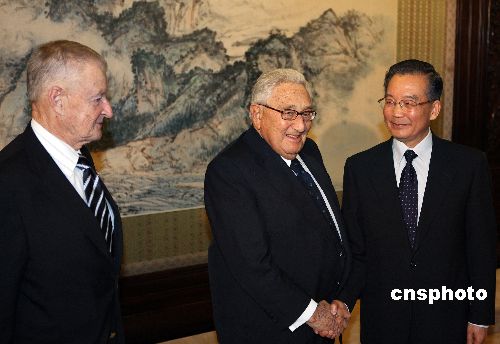 圖:溫家寶會見美國前國務卿基辛格等美國客人