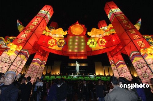 2月9日晚,10多萬福州市民涌向五一廣場和南后街觀看元宵燈會,現場人山人海、熱鬧非凡。 中新社發 王東明 攝