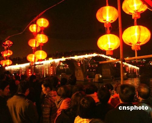 2月9日是中國傳統節日元宵節,杭州段運河兩岸沿線10公里張燈結彩,燈月交融,水波倒映。而橫跨于運河之上的拱宸橋,距今已經有300多年的歷史,在彩燈的裝飾下散發出不朽的魅力。中新社發 趙曄嬌 攝