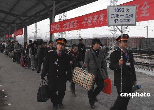 2月10日,貴州鐵路運(yùn)輸部門(mén)迎來(lái)了元宵節(jié)后第一次客流高峰。中新社發(fā) 姜澤鵬 攝