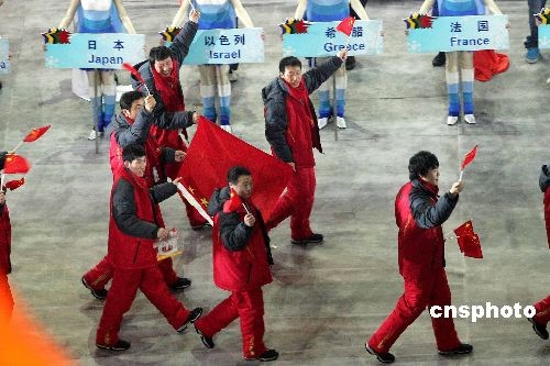 圖為在開幕式上中國代表團入場。中新社發 富田 攝