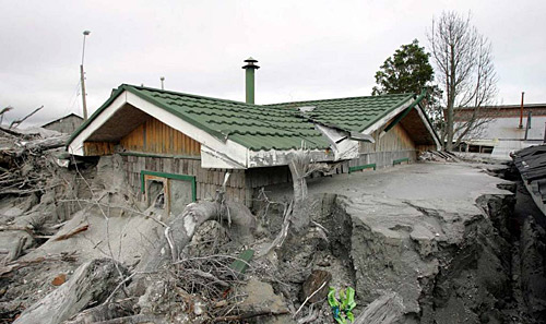 圖:智利火山再度爆發(fā)之后周邊城鎮(zhèn)一片狼藉(3)