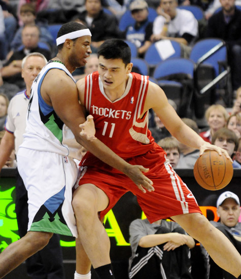 組圖:姚明兩雙戰績 火箭輕松擒狼