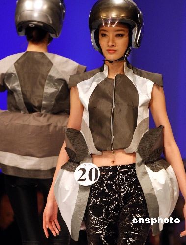 3月24日,在北京開幕的中國國際時(shí)裝周(09/10秋冬系列)展示系列活動(dòng)上,舉行了第17屆中國國際青年設(shè)計(jì)師時(shí)裝作品大賽決賽,來自18個(gè)國家的31位青年設(shè)計(jì)師和來自中國15個(gè)省市地區(qū)的24位設(shè)計(jì)師參加作品展示。圖為模特展示頗具太空感的時(shí)裝作品。中新社發(fā) 錢興強(qiáng) 攝