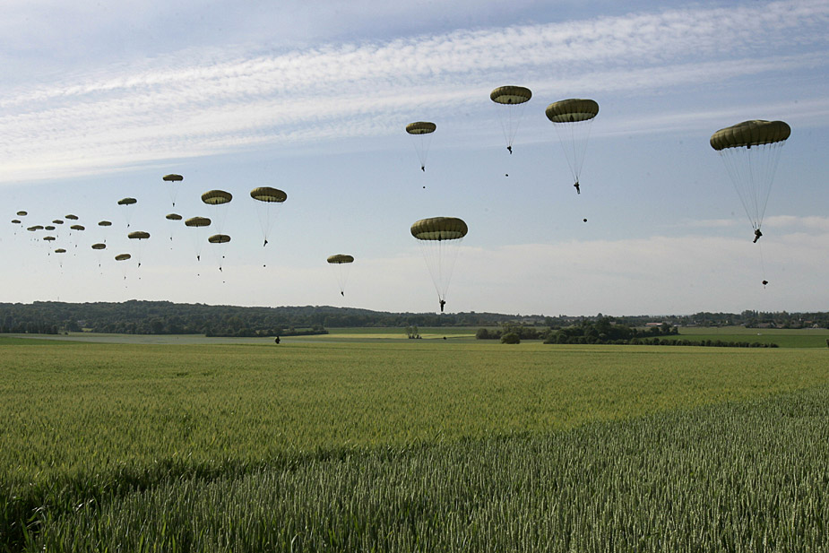圖為美英法等國(guó)士兵穿上二戰(zhàn)時(shí)期軍服在法國(guó)諾曼底海灘舉行“登陸戰(zhàn)”。