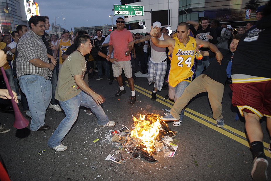在洛杉磯湖人隊(duì)15日奪得本年度NBA總冠軍后,洛杉磯球迷涌上街頭歡慶勝利,但在慶祝過程中偶發(fā)暴力事件,警方逮捕了至少8人。