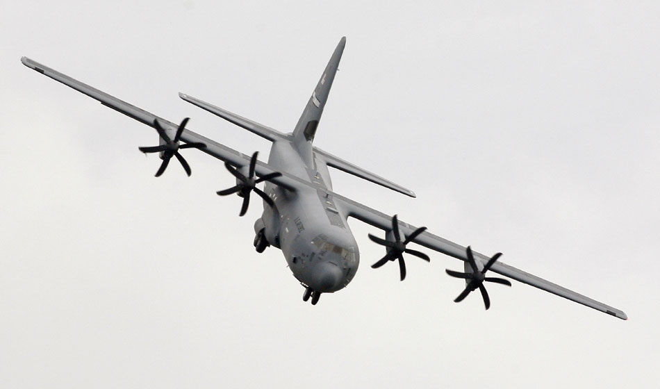 圖為美軍C-130J大力神運輸機進行飛行表演。