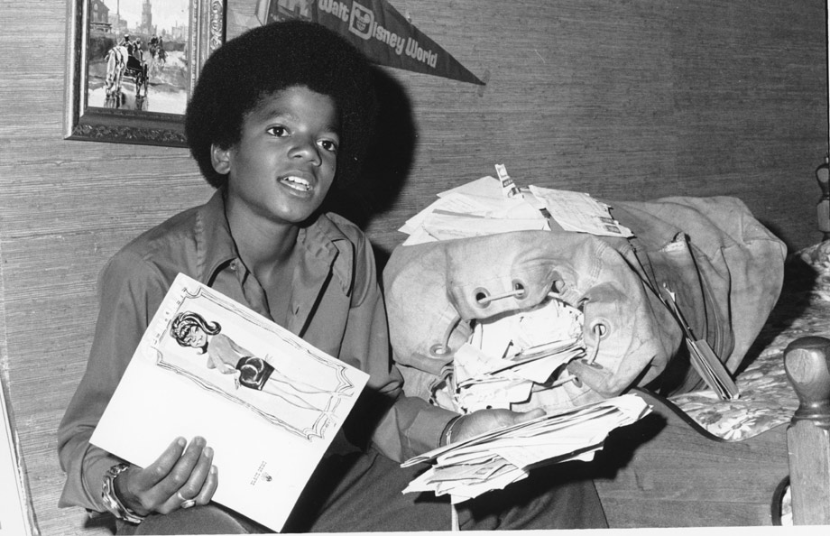 1972年,邁克爾·杰克遜在圣費爾南多谷的家中展示歌迷寄來的明信片。