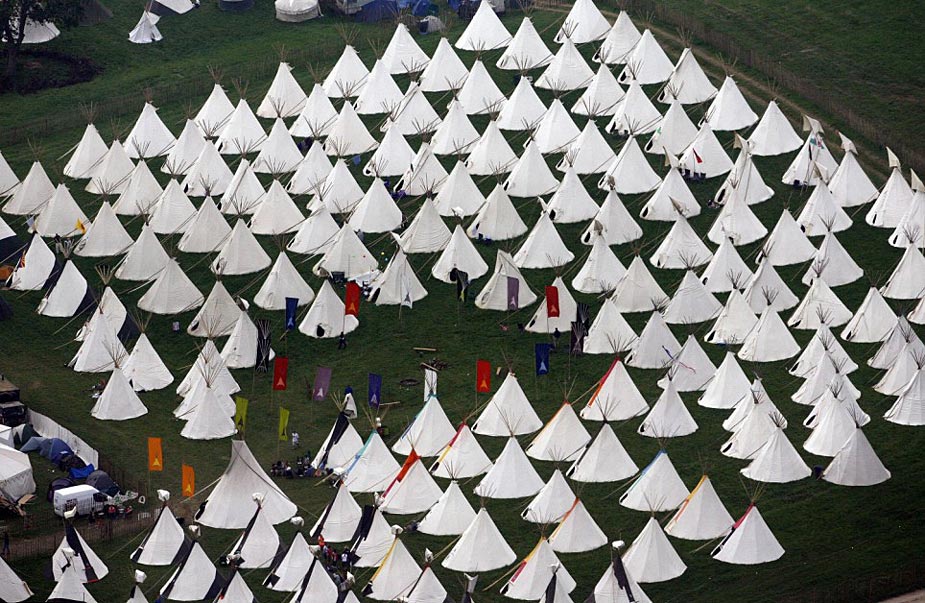 2009年格拉斯頓伯里音樂節在英國薩默塞特舉行,前來參加活動的14萬樂迷在宿營地搭起密密麻麻的帳篷。格拉斯頓伯里音樂節是世界上規模最大的戶外音樂節之一。