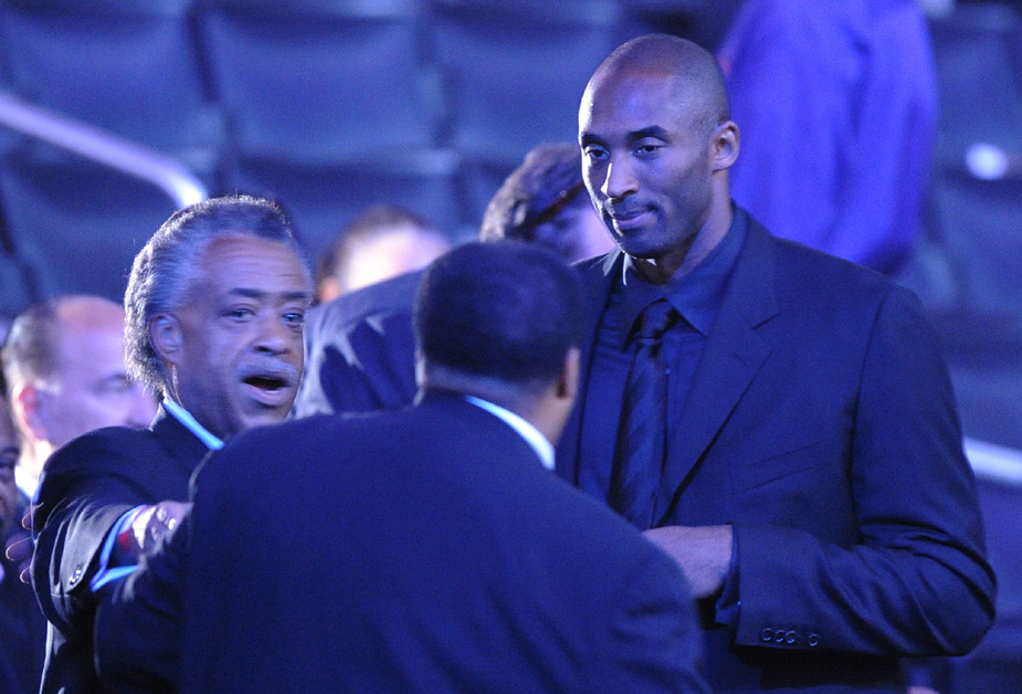 圖為籃球巨星科比現身邁克爾·杰克遜的追思會現場