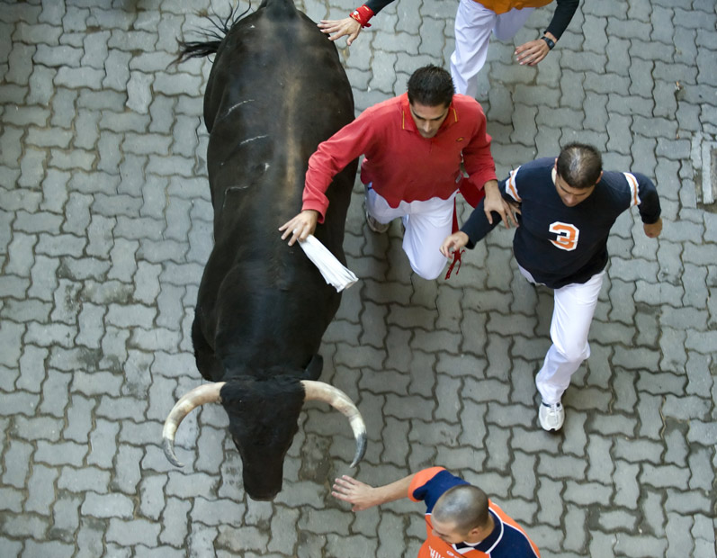 西班牙一年一度的潘普洛納奔牛節(jié)上驚險(xiǎn)場(chǎng)面層出不窮。奔牛節(jié)是潘普洛納的傳統(tǒng)節(jié)日,其歷史可以追溯到1591年,每年都吸引數(shù)十萬(wàn)人參加。