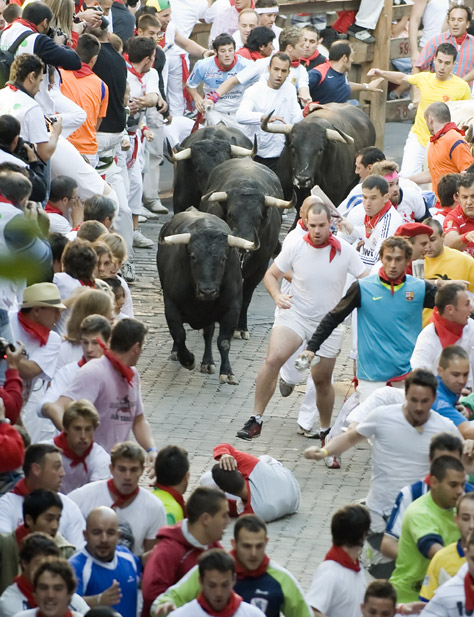 西班牙一年一度的潘普洛納奔牛節(jié)上驚險(xiǎn)場(chǎng)面層出不窮。奔牛節(jié)是潘普洛納的傳統(tǒng)節(jié)日,其歷史可以追溯到1591年,每年都吸引數(shù)十萬(wàn)人參加。