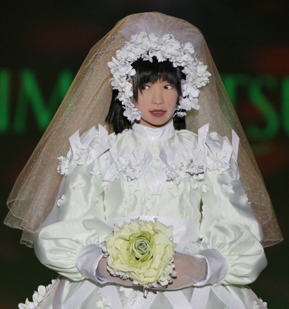 7月22日,日本大阪,類人機(jī)器人“HRP-4C”身穿由著名婚紗設(shè)計(jì)師為其量身定做的婚紗亮相。>>點(diǎn)擊觀看視頻