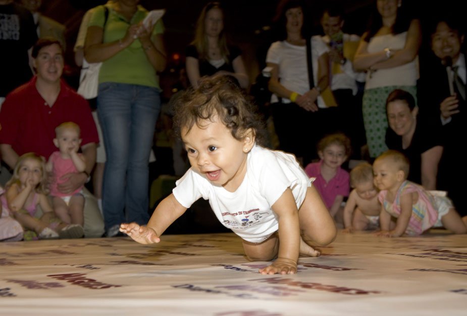 當地時間7月24日,美國紐約舉行了一場趣味橫生的小寶寶爬行大賽,獲得冠軍的小寶寶贏得了一年免費的紙尿褲。