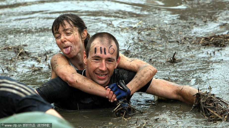 7月26日,硬漢挑戰賽在英國的伍爾弗漢普頓市舉行。這種以恐怖障礙著稱的比賽規則很簡單,勇士們通過規定的路程,誰先到達終點就是冠軍!參賽者需要在火焰中奔跑,穿越齊腰深的沼澤地,在帶刀片的鐵絲網下爬行,躍湖中,屏住呼吸穿越水下泥潭……