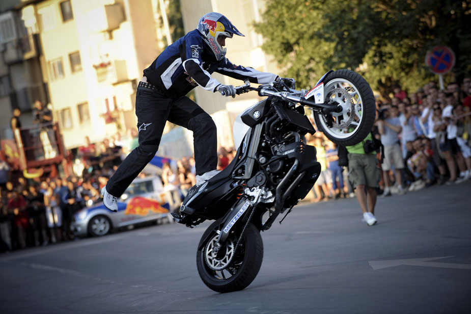 當?shù)貢r間26日,德國著名的特技表演大師Chris Pfeiffer在科索沃地區(qū)的Pristina進行一場街頭表演。