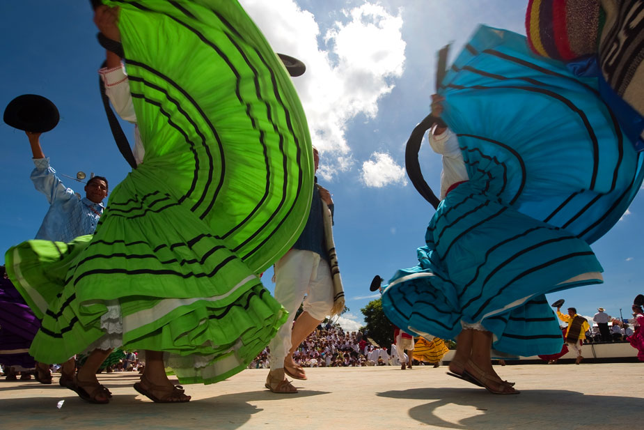 每年7月的最后兩個(gè)星期一是瓦哈卡聞名世界的“蓋拉蓋查節(jié)(Guelaguetza)”,來(lái)自瓦哈卡州各地、各具特色的印第安部落推選出具有代表性的舞蹈隊(duì),在瓦哈卡城外的弗爾丁山上載歌載舞,同時(shí)也為前來(lái)觀看的世界各地游客獻(xiàn)上本部落的土特產(chǎn)。
