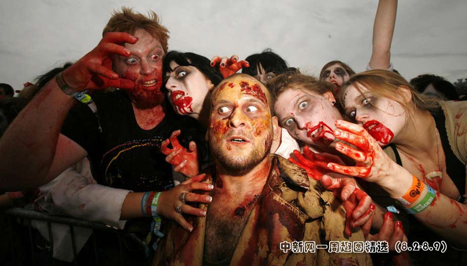 2009年8月6日,英國赫里福德郡Eastnor城堡,人們化裝成“僵尸”出現(xiàn)在大寒音樂節(jié)上。(圖片來源:CFP)點擊觀看詳細(xì)內(nèi)容