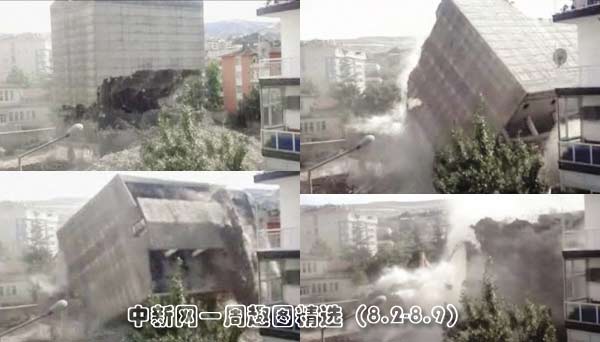 8月2日土耳其北部省份昌克勒一建筑工地在拆除樓房時發生意外,被爆破的樓房不但沒有解體垮塌反而整體翻滾180度后“倒立”一旁,還差點兒撞上了附近的居民樓。(圖片來源:揚子晚報)點擊觀看詳細內容
