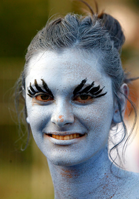 圖為參加狂歡節的人們在臉上進行“涂鴉”。