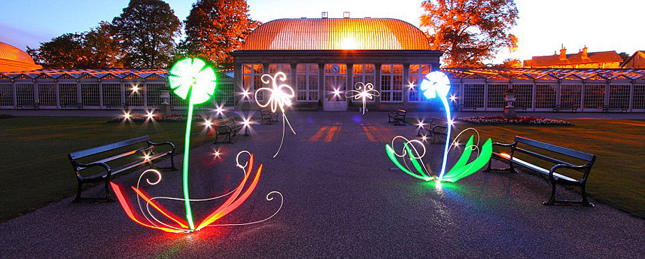 攝影師Michael Bosanko在英國植物園拍攝的名為“插花藝術”的光涂鴉照片。