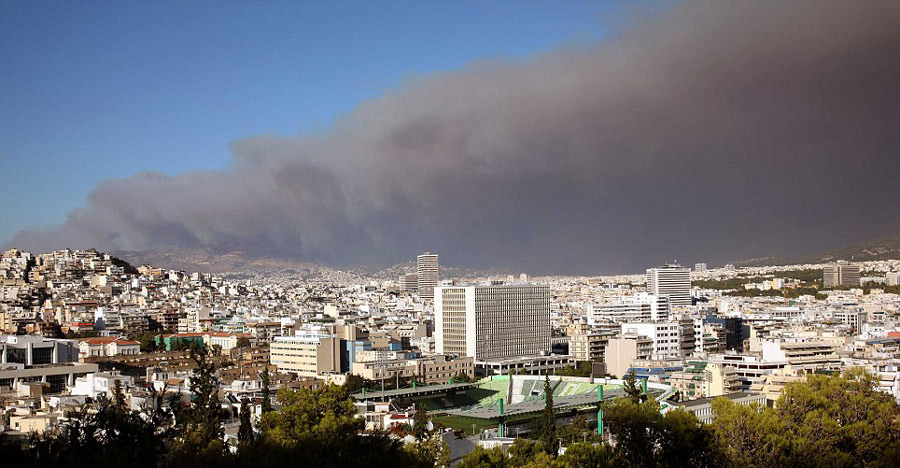 據英國媒體24日報道,希臘雅典東北部40公里外城郊上周五開始發生森林大火,由于火勢尚未受到控制,濃煙威脅附近數個城鎮。據悉當前至少上萬人逃離家園避難。