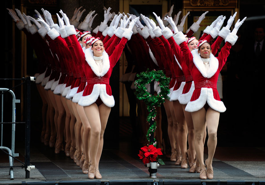 8月25日,美國(guó)“火箭女郎”舞蹈團(tuán)身著圣誕裝在無線電城音樂廳(Radio City Music Hall)前演出。來源:中國(guó)新聞網(wǎng)