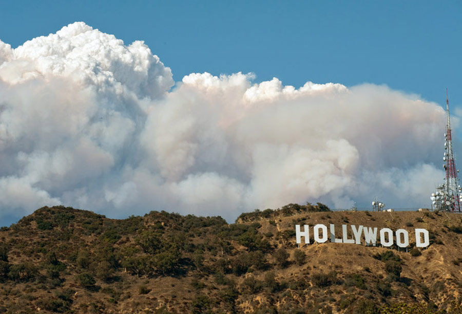 著名的好萊塢也受到大火的威脅。
