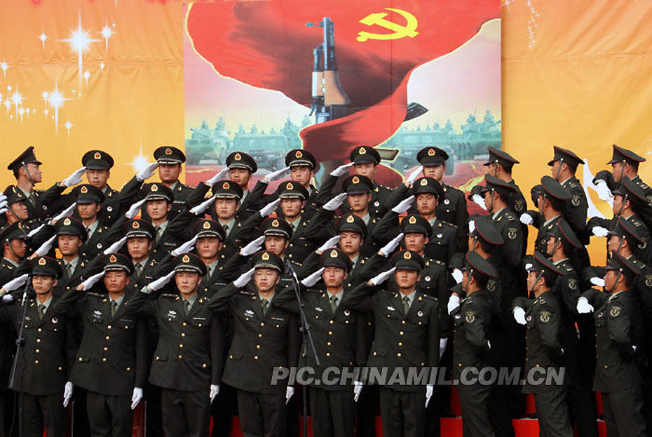 圖為人民軍隊(duì)忠于黨,唱出了鐵軍的精氣神。喬天富 攝
