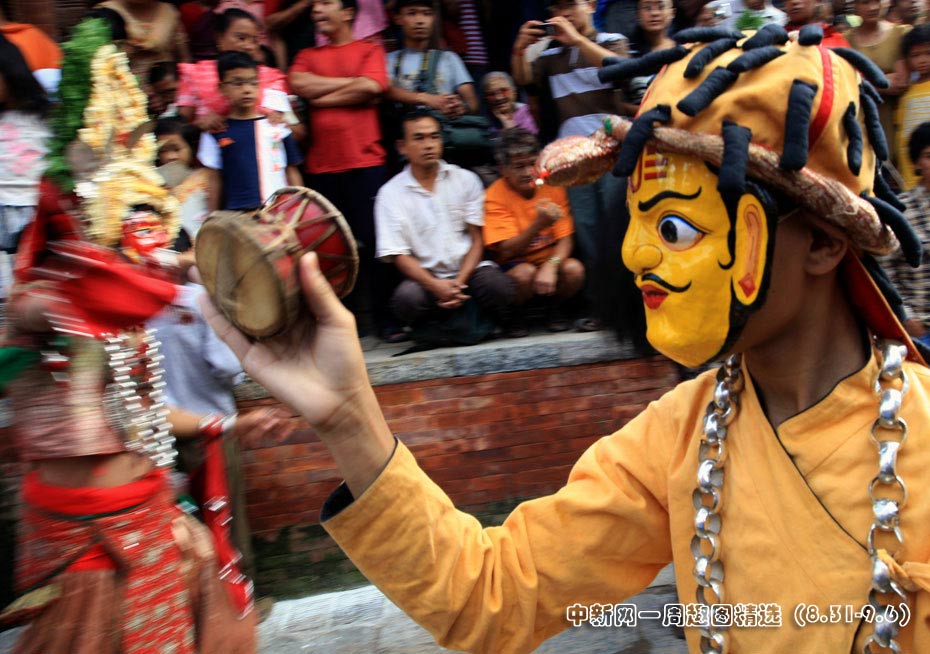 9月1日,尼泊爾加德滿都因陀羅節(jié)盛大開幕,人們戴上傳統(tǒng)的面具跳舞,熱烈的慶祝活動將持續(xù)多天。圖片來源:中國新聞網
