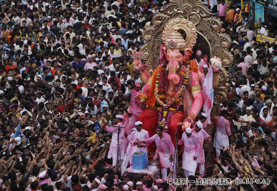 9月3日,印度各地的印度教教徒舉行盛大的儀式慶祝象頭神節(jié)。圖片來(lái)源:中國(guó)新聞網(wǎng)