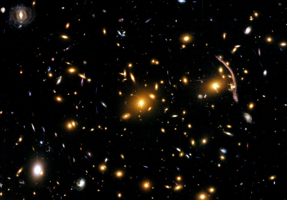 圖為哈勃望遠鏡上的相機拍攝的近50億光年的星系Abell 370。