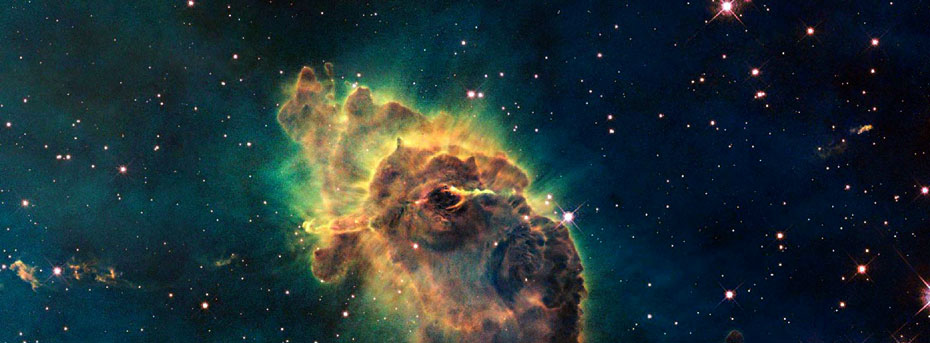 圖為哈勃望遠鏡上的相機拍攝的船底座星云中的由炙熱的氣體和塵埃組成的“創造之柱”。船底座星云位于距離地球7500光年的船底星座,是孕育恒星的地方。