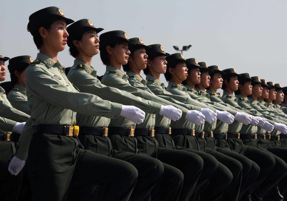 國慶60周年閱兵方陣中有三支“娘子軍”:三軍女兵方隊、女民兵方隊、女飛行員梯隊。這是新中國歷次閱兵中女兵方隊最多的一次,其中三軍女兵方隊和女飛行員梯隊是首次參加。圖片來源:新華網