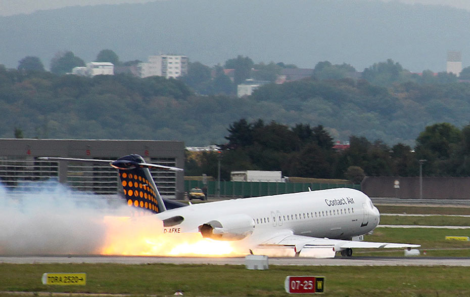 9月14日,在德國(guó)南部的斯圖加特機(jī)場(chǎng),一架福克100客機(jī)由于技術(shù)故障原因緊急迫降在停機(jī)坪跑道上,未造成人員傷亡。圖片來(lái)源:中國(guó)新聞網(wǎng)