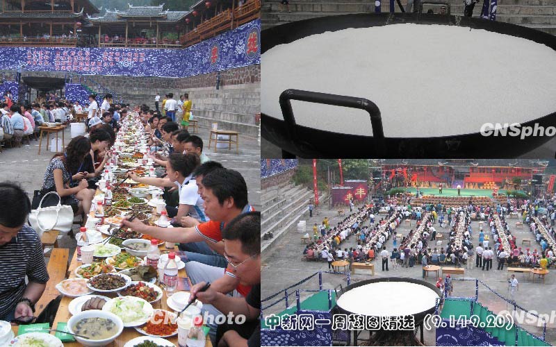 9月14日,萬人參與、規(guī)模巨大的“天下第一合攏宴”在湖南懷化中國侗文化城等5個(gè)宴會場快樂開餐。圖片來源:中國新聞網(wǎng)