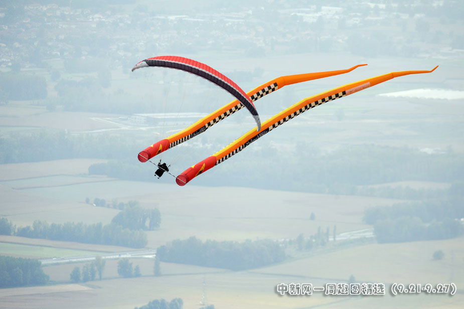 9月20日,法國東南部舉行第36屆伊卡洛斯杯自由飛行大賽,來自世界各地近萬名參賽者懷揣著夢想,駕駛著自制飛行器飛上天空。圖片來源:中國新聞網