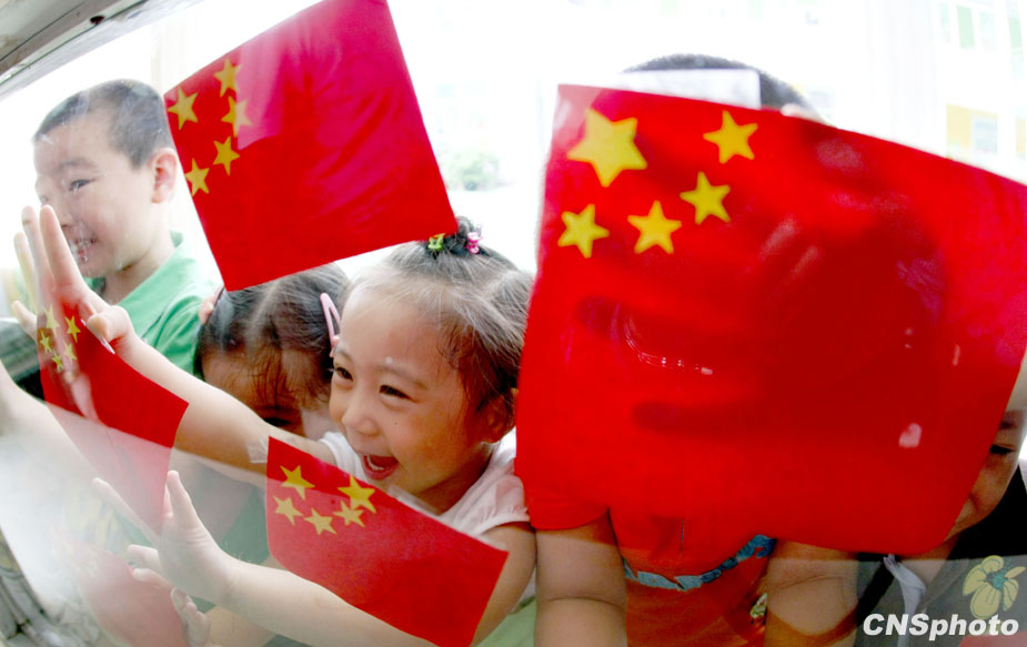 9月17日,在江蘇省無(wú)錫市僑誼實(shí)驗(yàn)幼兒園,孩子們正在教室里貼自己親手制作的五星紅旗。為迎接國(guó)慶節(jié)的到來(lái),該校開(kāi)展了一系列的紅色教育,親自動(dòng)手做一面五星紅旗更是成了第一課。 中新社發(fā) 張浩 攝