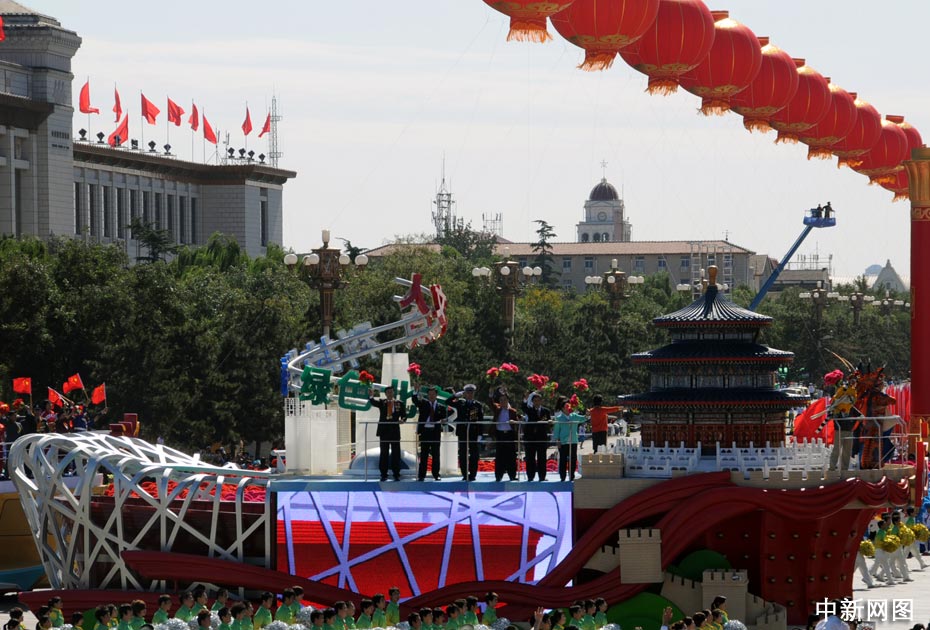 劉翔李寧亮相彩車(chē)