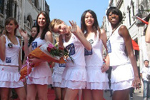 2009年10月1日,北京,首都各界慶祝中華人民共和國成立60周年大會在北京舉行。閱兵式上女兵方陣成為一道靚麗風景。來源:中國新聞網。   >>更多圖片